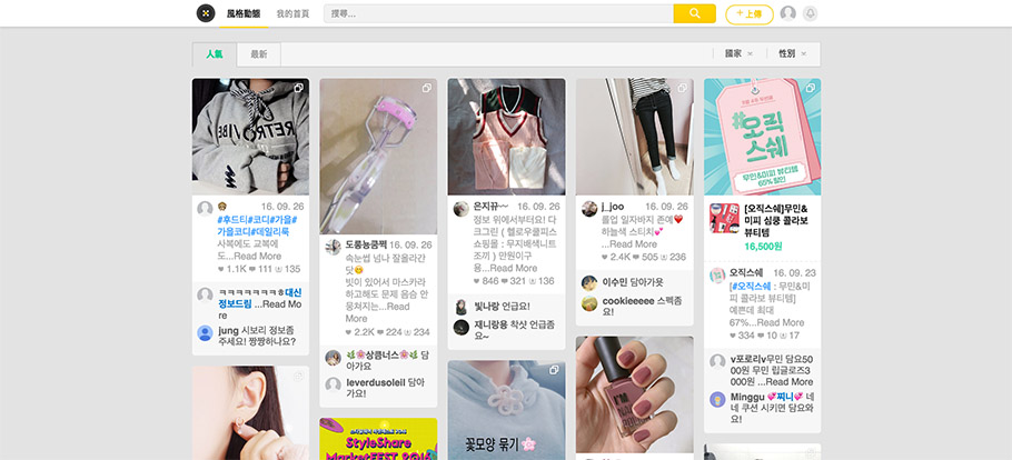 照片墻也非常適用于時尚穿搭分享網站,能讓使用者一目了然,點選自己所需的資源。